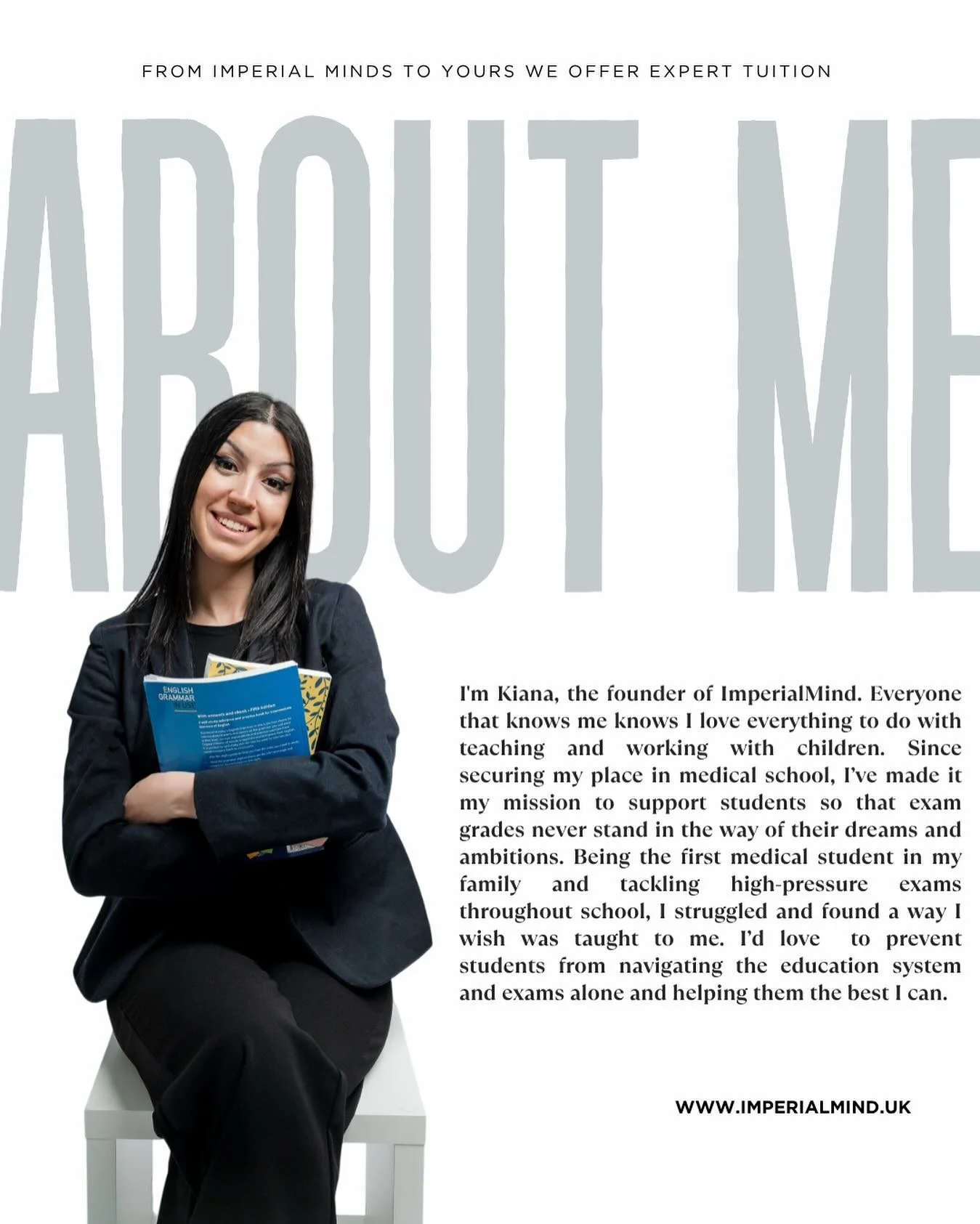 Imperial Mind is run by Kiana Najafi, an Imperial College London Medical student with over 5 years of tutoring experience and +1000 lessons taught on private tutoring platforms.